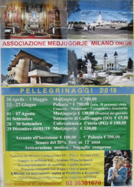 Quei volantini, così redatti, dei pellegrinaggi in Bosnia girano abitualmente e credo non siano sempre della stessa società organizzatrice (magari onlus). Nessuno forse intende dare vantaggi ai concorrenti. Si trovano tifosi che distribuiscono detti volantini fuori delle chiese, “col permesso del parroco”. Magari – almeno in quei casi – un maggior controllo dei contenuti è auspicabile.