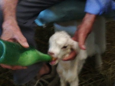 Il contadino cacciatore compra al market il latte di capra e allatta l’albino con il biberon.
