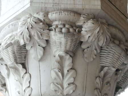 PERSICI – pesche. Questo capitello è del 1484 ma a casa dei miei, nelle Marche, le pesche anche oggi sono dette “persici” come nella Venezia dei tempi d’oro.