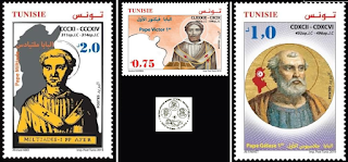 Il giorno di Natale le Poste tunisine hanno emesso tre francobolli dedicati ai tre Papi africani: Vittore I (189-199), Milziade (311-314), Gelasio I (492-496). Un timbro speciale, realizzato con la collaborazione delle Poste Vaticane, ha accompagnato l’emissione che rientra in un programma delle Poste tunisine mirato a “segnalare i valori di tolleranza, fratellanza, apertura e dialogo interreligioso”.