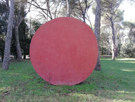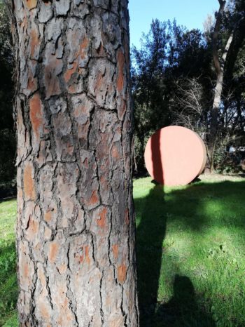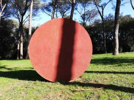 Vieni con me nel Parco di Villa Glori in una mattinata di luce, entriamo tra i pini e giochiamo a prenderci con le Grandi ruote di Mauro Staccioli (1937-2018), lo scultore più dotato di vis comunicativa tra quelli che hanno realizzato opere di grandi dimensioni per il “Parco di scultura contemporanea” di questa villa romana. Il gioco ha cinque mosse: una è questa della ruota del primo mattino ma nei commenti verranno a salutarti altre ore e altre ombre.
