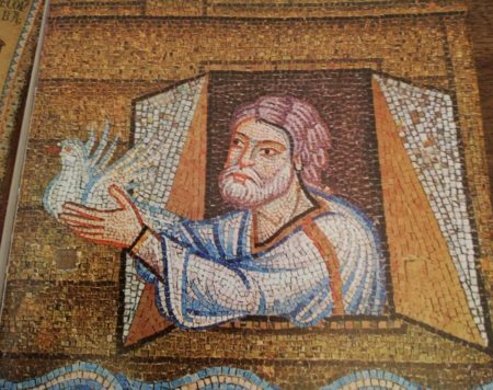 Per impersonare Noè [che qui vediamo con la colomba in un mosaico della Basilica di San Marco, Venezia] mi sono sottoposto a un trucco di quattro ore. Non lo farò più.