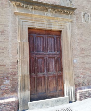 La scritta è sull’architrave di questa porta. La trovi all’ingresso di tante chiese – per esempio nel santuario di San Michele Arcangelo a Monte Sant’Angelo in Puglia – e viene dal capitolo 28 del libro della Genesi, dove compare in questo contesto: “Giacobbe si svegliò dal sonno e disse: certo, il Signore è in questo luogo e io non lo sapevo. 17 Ebbe timore e disse: “Quanto è terribile questo luogo! Questa è proprio la casa di Dio, questa è la porta del cielo”. Mando un saluto al creativo autore del testo su Bibbona della guida del Touring 1974, nonché alla curva pericolosa e alla storia tutta da scrivere delle segnalazioni stradali.