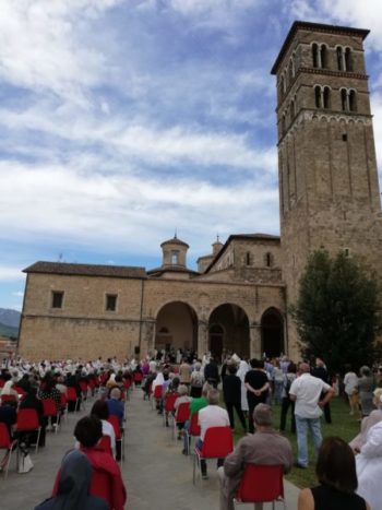 E’ un’immagine della messa di addio al vescovo Lorenzo Chiarinelli, mio amico di gioventù, presieduta stamane a Rieti, in piazza Battisti, davanti alla cattedrale, dal vescovo Domenico Pompili. Ieri avevo descritto qui nel blog la ricca e amabile figura di questo uomo di Dio. Nei commenti riporto un altro mio testo con il quale lo ricordo oggi sull’Osservatore Romano: un testo che il direttore Andrea Monda mi aveva chiesto di persona e che ha pubblicato a pagina sei con il titolo “Maestro di amicizia e di libertà”.