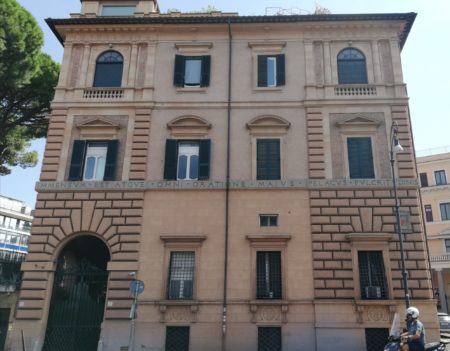 Passando stamane per via Paisiello, che corre a lato di Villa Borghese, ho fotografato in facciata Villa Grotta Pallotta che ha nella cornice o tagliapiano di centro una sentenza latina sulla grande bellezza di Roma: la riporto, la traduco e ve la dedico nel primo commento. Nel secondo dico di chi è e con bel garbo ne scippo una parte e la faccio mia.