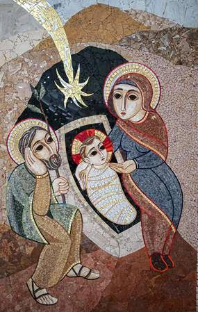 Grazie a Marco Ivan Rupnik: l’immagine del post l’ho presa dalla “Natività”, mosaico che il mio amico gesuita, maestro di parola e di immagine, ha realizzato nel 2019 per la chiesa di san Giuliano e san Germano a Sant Julià de Lòria (Andorra).