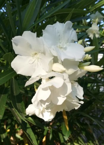 Varietà di piante, arbusti, cespugli, felci, fiori, rampicanti: un parco regale, vasto e colorato, curatissimo. I due giardinieri Antonio e Manuel scarriolano, potano, innaffiano tutto il giorno. “Questo non è neanche un lavoro”, dicono: “è piuttosto un divertimento”. “E’ un bel lavoro”, dico io. “Ma sta di fatto che siete in movimento tutto il giorno”. “Restituiamo alle piante qualcosa di quello che ci danno. Ci fanno respirare, ci colorano la vita”. Non ho mai visto giardinieri così bravi, dico io e loro: “E’ il clima della Liguria che ci aiuta. Non c’è regione più felice per questo”.