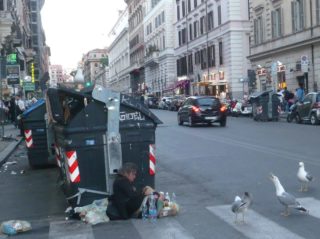 Per i non romani: sulla destra della foto verso il fondo si vede la balconata di San Francesco di Paola e della salita a San Pietro in Vincoli. Notare anche il gabbiano sul cassonetto. Siamo a cento metri dalla mia chiesa parrocchiale, che è sulla sinistra.