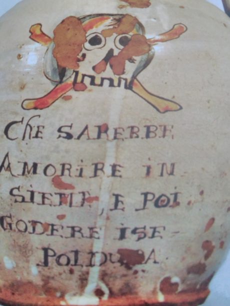 “Che sarebbe a morire insieme e poi godere in sepoltura” è scritto su un’anfora che ho fotografato ieri nel Museo della Ceramica di Ariano Irpino. E’ la più viva scritta goliardica sulla morte che io conosca. Nei commenti mi avventuro.