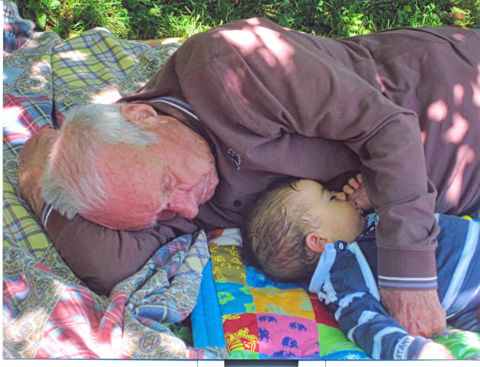 Ma chi può impedirci di vedere in questa foto, in queste immagini del vecchio e del bimbo che sereni riposano, in questo tenero abbraccio di protezione che nemmeno nel sonno si interrompe, la riproposizione di un eterno modello di sacra parentela? Nonno Giulio (come tutti i nonni) come nonno Gioacchino, certamente.
