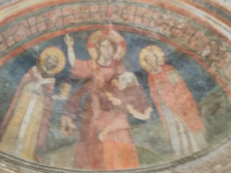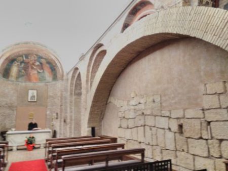 Questo campo lungo ci dà la parete di destra della chiesa, costruita con pietre squadrate d’epoca repubblicana, forse portate qui da un qualche tratto delle Mura Serviane. Nell’VIII secolo le pietre le prendevano dove le trovavano. Oggi invece. Pare che qui, in origine, fosse posto il corpo del Santo al quale la chiesa è dedicata. Il prete che prepara l’altare è il mio parroco don Francesco, che oggi sostituiva il titolare della chiesa, Cappella della Camera dei Deputati, che è il vescovo ausiliare Gianrico Ruzza. Io avevo parlato al parroco di questa chiesa quando lui non la conosceva e oggi mi ci ha portato. “I preti ponno” si dice a Roma.