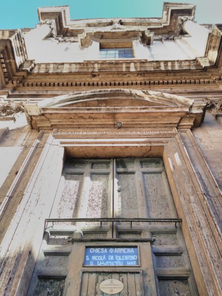 San Nicola da Tolentino è bellissima nella piazzetta in salita, con la scalinata davanti. Pare chiusa, ma ci entri dal Collegio Armeno che ne è proprietario ed è tenuta benissimo. Tra l’altro in fondo alla parete di sinistra s’apre una cappella dov’è una riproduzione secentesca del Santo Sepolcro che è un manufatto singolarissimo in ottima pietra anch’esso.
