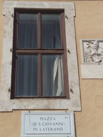 Tre cose questa finestra dell’Ospedale San Giovanni mi rammenta. Una bella bella – la nascita dei miei due figli, avvenuta proprio in quel luogo, perciò mi è caro- e due brutte brutte: Everso dell’Anguillara – metafora dei voltagabbana che ogni tempo sotto il cielo hanno vissuto cambiando casacca a seconda di dove si volge il potere per cui “pecunia non olet”, fosse anche passare sopra i cadaveri, tutto si fa per il dio quattrino- e gli Uomini indegni che dimorano nell’intrigo e che troviamo a tutti i livelli , nel governo di Stato e anche nella Chiesa, certo, dove ce ne sono in abbondanza, nelle piccole come nelle alte sfere.