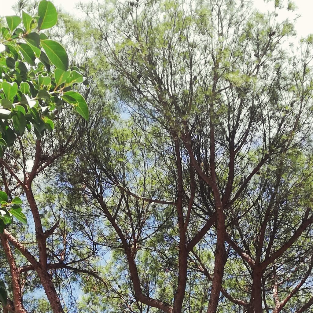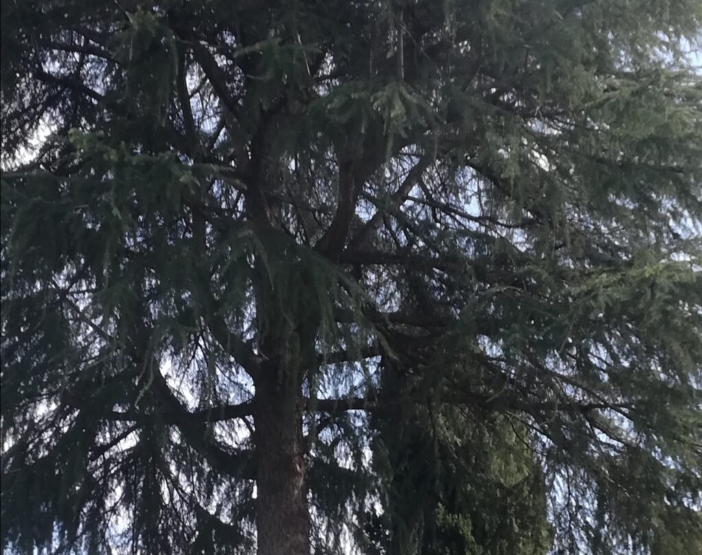 La magnolia che è sempre verde fa gli onori di casa al primo verde che s’affaccia sui rami del vicinato. Foto da me scattata nel parco che è davanti al Mausoleo di Costanza