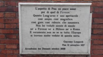 “L’aspetto di Pisa mi piace assai più di quel di Firenze”: sono parole di Leopardi, il mio vicin grande, che sapeva dire bene ogni cosa. Le ho pescate e ripescate passando ieri e ripassando oggi per il Lungarno. Nei commenti altre parole di Giacomo e altre mie esclamazioni patetiche.