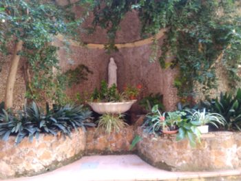 Questa è la seconda foto che ho fatto nel cortile. Nell’insieme dell’edificio e del giardino non ci sono altre fontane e questa non ha acqua. Non so se sia la fontana che tu dicevi. La suora nulla sapeva dirmi. Ho con me l’opuscoletto, il telefono e l’indirizzo e-mail della “Pia Casa”, tuttora abitata e gestita dalle suore pallottine. Se ti servono te li spedisco.