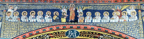 [Segue dal post] Un grazie a Tullio Citrini, rettore del Seminario Lombardo in Roma, che ha tenuto l’omelia citata nel post. Egli ha fatto anche riferimento alla Gerusalemme Celeste che splende sull’arco trionfale di Santa Prassede, riprodotta nel post.