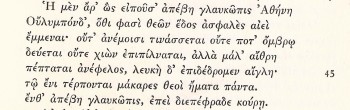 7. Prima di tutto vorrei dire che questi versi so o meravigliosi per la loro musicalità. Nonne ho trovato però la lettura in Internet, ed anche la lettura di altri versi di Omero non mi sembra fatta bene, è troppo meccanica. Perciò devo studiare altri mezzi per farla sentire. Passando al secondo punto, qui si parla della dea Athena, che è definita glaukopis. Il che vuol dire, secondo alcuni, che aveva gli occhi valichi, cioè verde -azzurri, secondo altri che aveva gli occhi di civetta,in greco glaux; d’altra parte l’ animale sacro ad Athena era proprio la civetta.