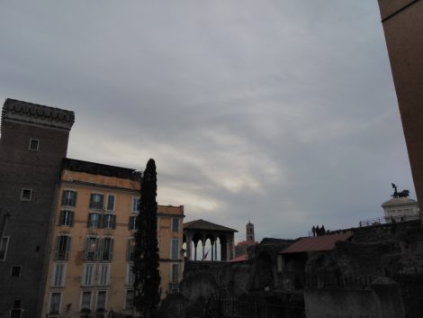 Passando per la Salita del Grillo ho fatto per voi questa foto nella quale sono millanta maraviglie. Sulla destra, a pelo del muro dell’Ordinariato militare, una delle quadrighe alate rullanti in capite all’Altare della Patria. In primo piano, un terrazzo dei Mercati Traianei con visitatori. Al centro svetta la torre del Campidoglio e subito dopo l’elegante loggia della Casa dei Cavalieri di Rodi. Quindi un dignitoso Cupressus Sempervirens. Infine la Torre del Grillo: “Ex Marchione de Grillis”. Per vederla meglio andate a questo post: http://www.luigiaccattoli.it/blog/ex-marchione-de-grillis-caspita-che-latino/